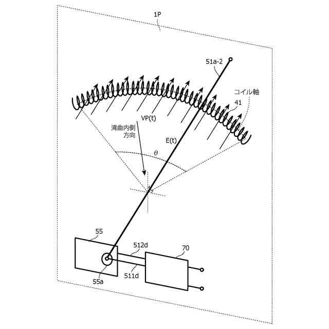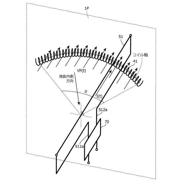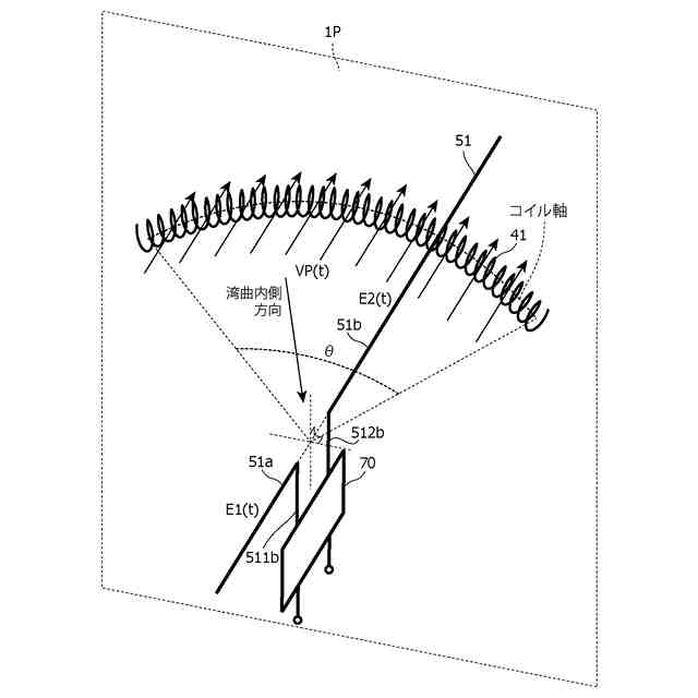 前記第1の電磁気及びベクトルポテンシャル発生感受装置は、湾曲したコイル軸に沿って延びているソレノイドコイルを備え、前記ソレノイドコイルで前記ベクトルポテンシャルを発生し、