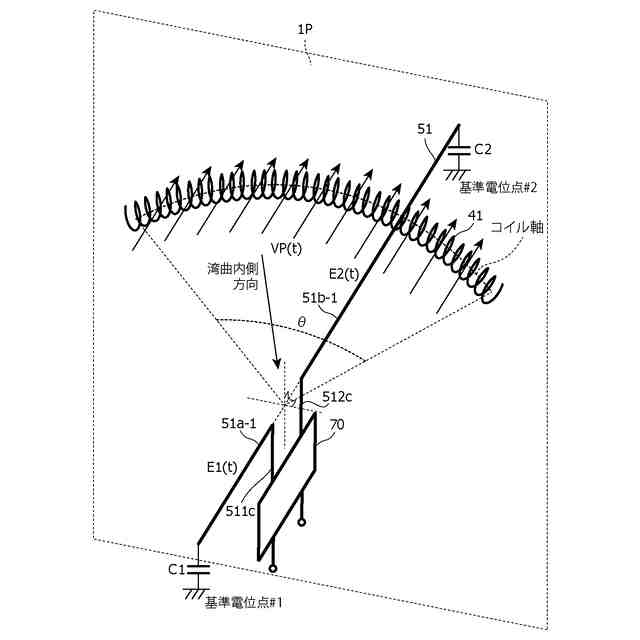 図3は、図1における電磁気及びベクトルポテンシャル発生感受装置21で発生し電磁気及びベクトルポテンシャル発生感受装置14で感受されるベクトルポテンシャルについて説明する斜視図である。