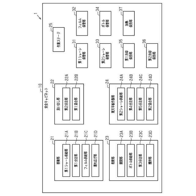 前記ボトル保管部に保管された前記ボトルを前記開閉部に供給するとともに、前記開閉部が前記蓋部を開けた状態の前記ボトルを前記安全キャビネットの内部の作業位置に供給するボトル供給部と、