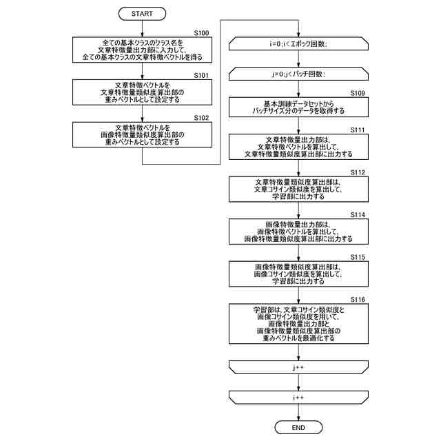 【解決手段】文章特徴量出力部30は、画像ラベル情報に言葉を追加した加工文章を入力し文章特徴量を出力する。文章特徴量類似度算出部40は、文章特徴量出力部30が継続学習前に出力した全ての基本クラスと追加クラスの文章特徴量を文章重みベクトルとし、前記基本クラスの文章重みベクトルと、追加クラスの文章重みベクトルとを保持し、文章特徴量を入力とし、文章類似度を算出する。画像特徴量類似度算出部20は、文章特徴量出力部30が継続学習前に出力した全ての追加クラスの文章特徴量を追加クラスの画像重みベクトルとし、基本クラスの学習で更新済みの基本クラスの画像重みベクトルと、追加クラスの画像重みベクトルとを保持し、画像特徴量を入力とし、画像類似度を算出する。