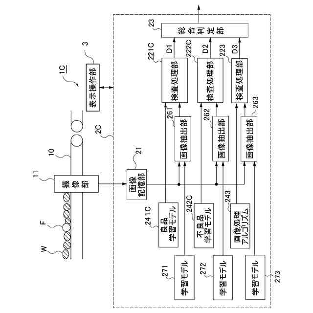 複数の前記検査処理部の1つは、入力された前記撮像画像を所定の画像処理アルゴリズム(243)を用いて画像処理を実施し、前記判定データを出力する、