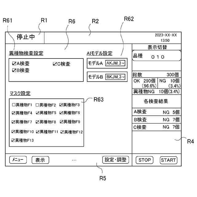 上記[8]の構成によれば、精度の悪い不良品学習モデルがあった場合、その不良品学習モデルを外すことができるため、より一層精度よく、検査を行うことができる。また、選択されていない異種物に対応する不良品学習モデルは処理を行う必要がなく、処理負荷を軽減して、検査を迅速に行うことができる。