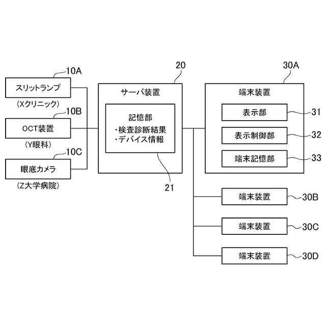 被検者の眼球に関する検査又は画像診断の結果を記憶する記憶部を有するサーバ装置と、