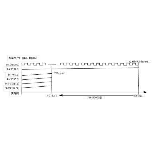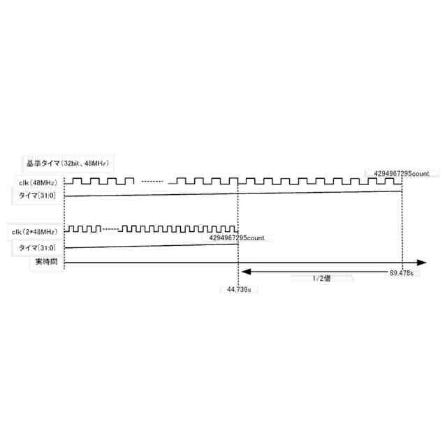 ただし、タイマのbit幅が膨大になると、診断時間が長時間に及びうる。例えば32bitタイマで48MHzのクロックを用いて0から満了までカウントアップした場合、約89秒かかる。この対策としてクロックをより高速なもの、例えばクロック周波数が2倍のものに切り替えた場合でも、約45秒近くかかり、またカウントダウンの診断も行えば診断時間がより長時間に及ぶ。また、システムに組み込まれている最大周波数以上に診断時間を短縮したい場合、診断用に専用の発振回路を開発する必要があるため、開発工数が増加し得る。このように従来技術では、タイマの診断時に全てのビットカウンタのカウントアップ及びカウントダウンに要する時間をより短縮する上で、改善の余地がある。