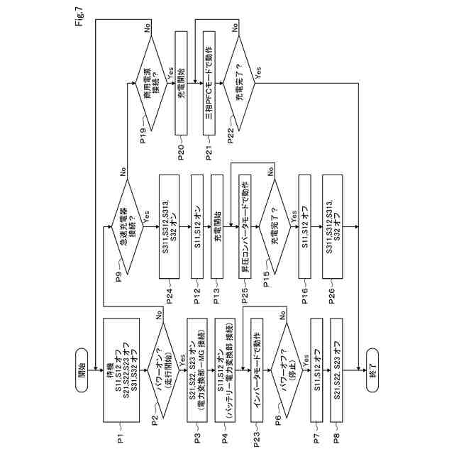 特許文献1~3には、上記の問題(1)、(2)に対して、電気自動車は充電時は停止しており、MGやインバータは使用しないことに着眼して、インバータのパワー素子や、MGの巻線、リアクトルを利用して充電用の電力変換器として共用することで、体格、コストを抑制する技術が開示されている。