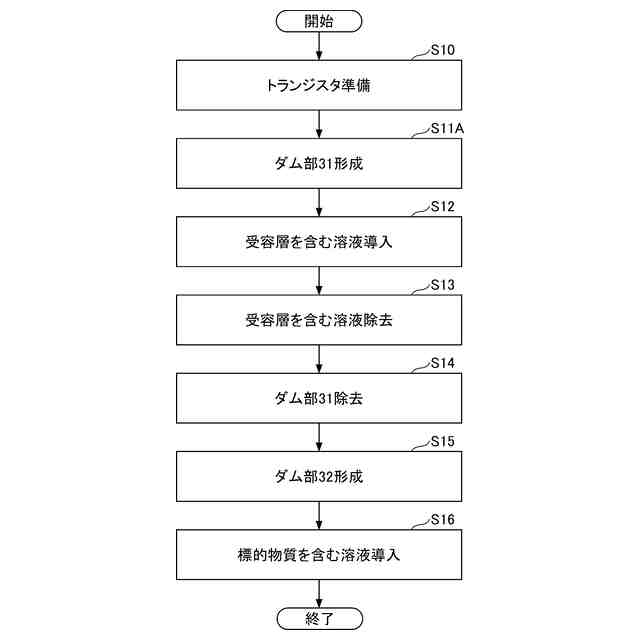 前記チャネル層上に、標的物質を捕捉可能な受容層となる材料を含む溶液を接触させて、前記ゲート電極上に前記溶液を接触させずに、前記チャネル層上に前記受容層を形成す工程と、