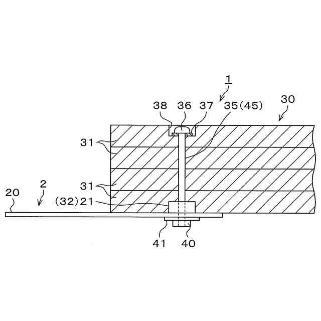 しかしながら、先願技術は、ボルトにせん断力(鋼製部材と木製部材との横ずれに抗する力)が集中する構成であり、ボルトを破損する恐れがあり、そのためにボルトを太くしなければならない。また、シア部材を木製部材に貫通させて設けているため、木製部材にシア部材と同等径の貫通孔を形成させる必要がある。そのため、貫通孔周りでの木製部材の断面欠損が大きくなり、木製部材自体の断面を大きくする必要がある。さらに、先願技術では、ボルト(ナット)が緩むと必要な摩擦力が得られなくなり、ボルトにせん断力が集中する可能性がある。