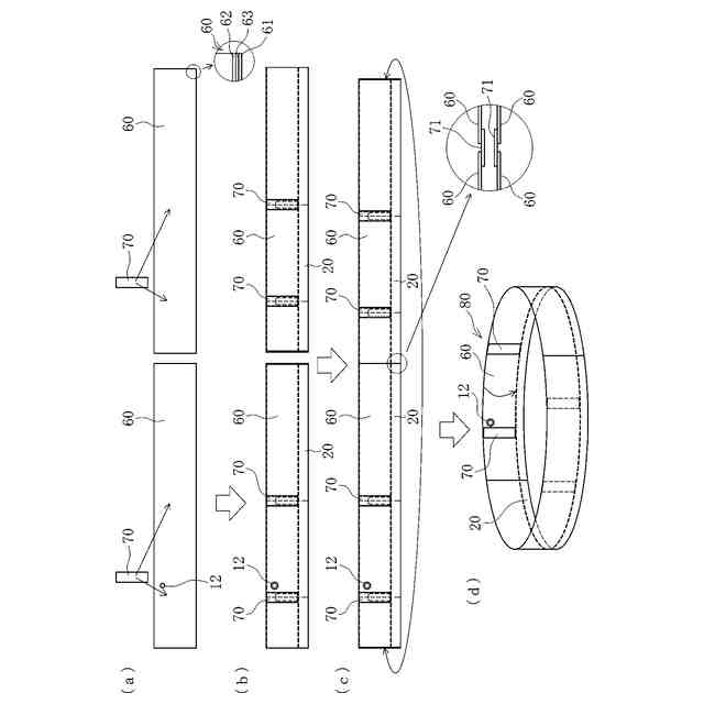 前記複合シート材の端部同士を連結して環状のシートにする工程と、