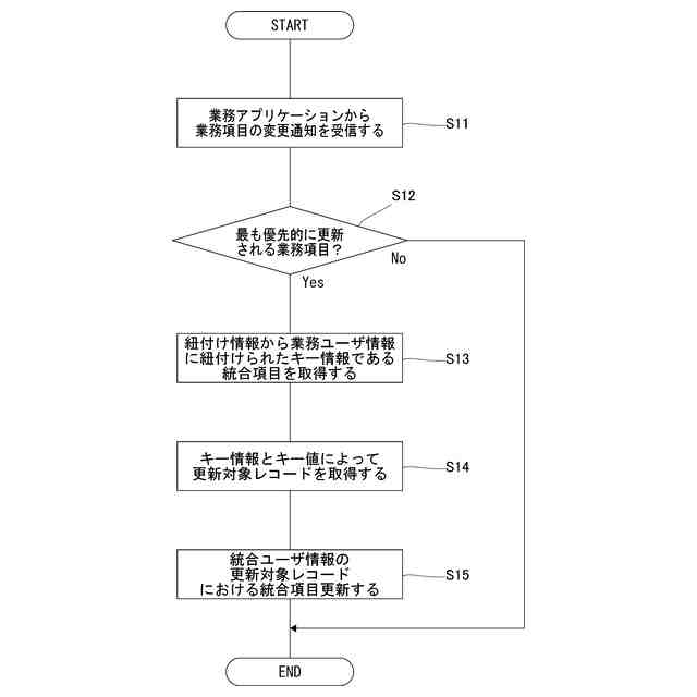 更新部により、前記業務ユーザ情報に設けられた前記業務項目に格納された前記業務情報に変更があったとき、前記更新条件に基づいて、前記統合ユーザ情報に設けられた前記統合項目に格納された前記統合情報を、前記業務情報によって更新する、