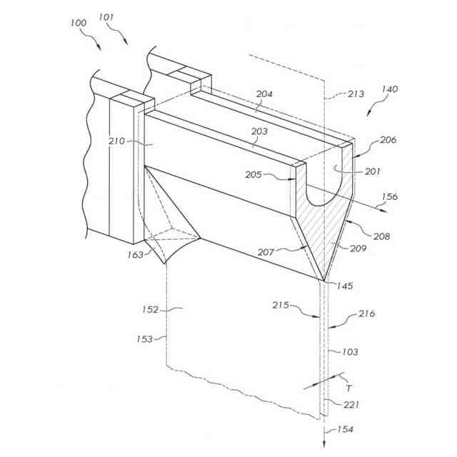 前記第2の面部分と前記第3の面部分は、前記第1の面部分の両側に位置決めされ、前記第2の面部分は前記第1の面部分に対して約1度から約3度である第1の角度を形成し、前記第3の面部分は前記第1の面部分に対して約1度から約3度である第2の角度を形成する、
