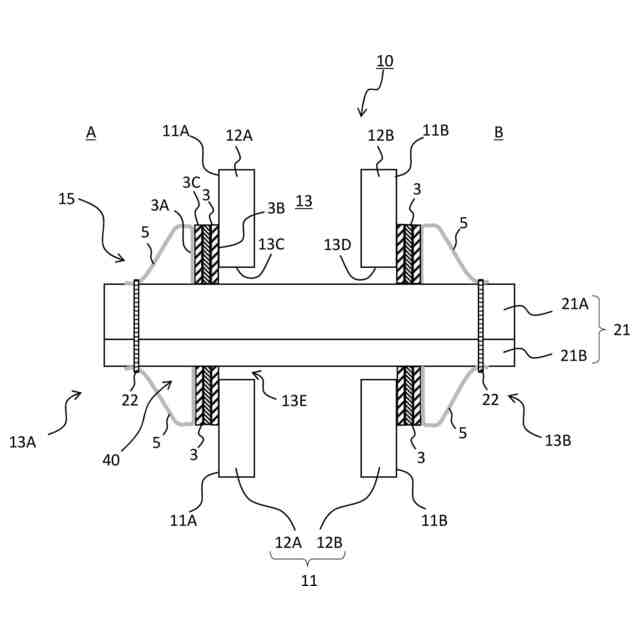 集合住宅、オフィスビル、学校等の建築物において、壁等の仕切り部には、ケーブル類、配管類などの長尺の挿通体を通すために、区画貫通部が設けられることがある。区画貫通部は、いずれかの区画で火災が発生した際に、他の区画への延焼を防止するために、防火措置を施した構造(耐火構造)にすることが求められている。仕切り部は、2枚の壁部からなり、壁部間が中空部となっている中空壁が一般的である。