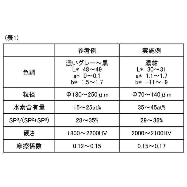 特許文献1には、基材と、上記基材上に形成されたダイヤモンドライクカーボン(以下DLCと記載)からなる黒色硬質皮膜とを有する装飾品が記載されている。具体的には、上記黒色硬質皮膜は、DLCからなる傾斜層を含み、上記傾斜層中の水素含有量が上記基材から離れるにしたがって増加している。