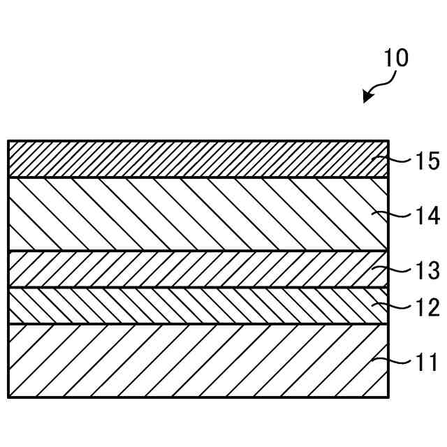 図1は、実施形態に係る装飾部材を説明するための図である。図1は、装飾部材10の断面図を模式的に表している。装飾部材10では、基材11上に、第1密着層12、第2密着層13、硬質層14および最表層15が、この順で積層されている。