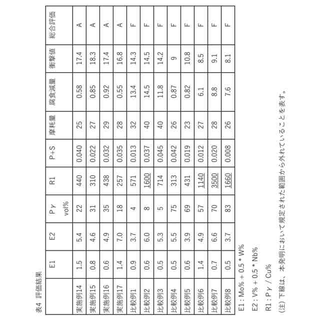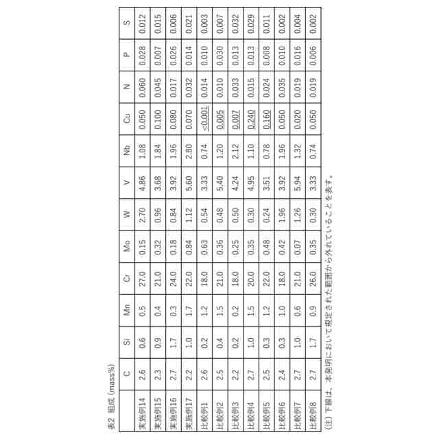 (これらの数式において、Mo%はMoの質量含有率を表し、W%はWの質量含有率を表し、V%はVの質量含有率を表し、Nb%はNbの質量含有率を表し、Pγは焼入れ及び焼戻しの後の残留オーステナイト相の体積率(体積%)を表す。)