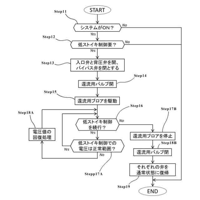 しかしながら上述した各特許文献に限らず現在の技術では以下に述べる課題が存在する。すなわち車載される燃料電池は、例えばアイドリング時や低温環境下での始動時などにストイキオメトリックを下げた状態での制御(以下、このような低酸素状態での燃料電池の運転制御を「低ストイキ制御」とも称する)を実現するため間欠的に駆動されることがある。このとき燃料電池へ酸素ガスを供給するために過給機が間欠駆動される場合には、例えばコンプレッサーの劣化が進むため可能な限り起動停止の回数は削減したい。特に軽量化などを目的としてコンプレッサーにエアベアリングが採用される場合には、上記した起動停止に伴うエアベアリングの摩擦による劣化が顕著となり得る。