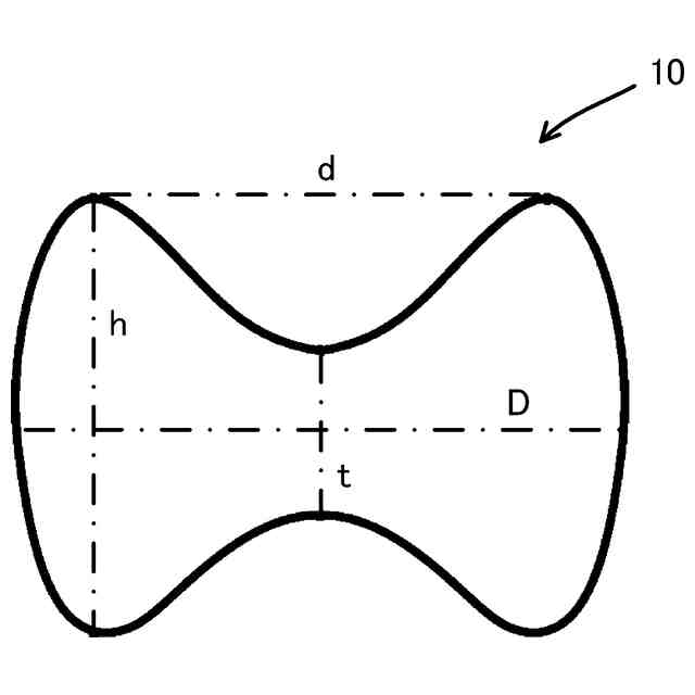 (D:平均最大径(μm)、h:平均最大厚さ(μm)、S:標準偏差、t:平均最小厚さ(μm))