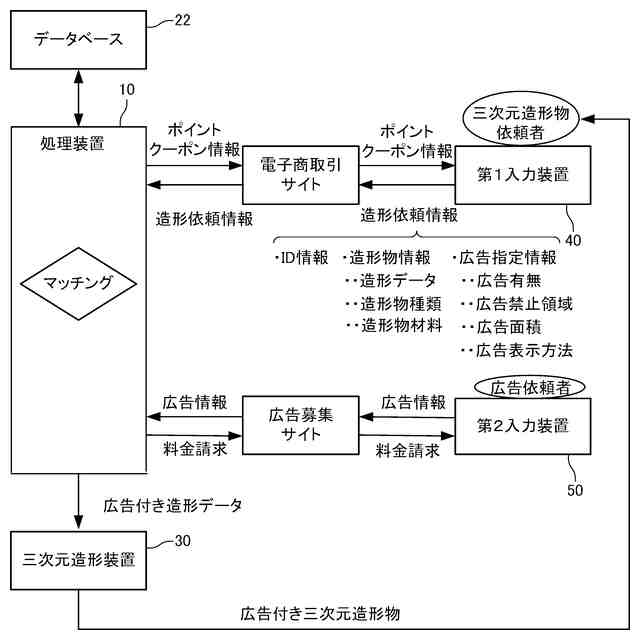 三次元造形物に広告を付ける否かを指定する広告有無情報を受け付ける工程と、