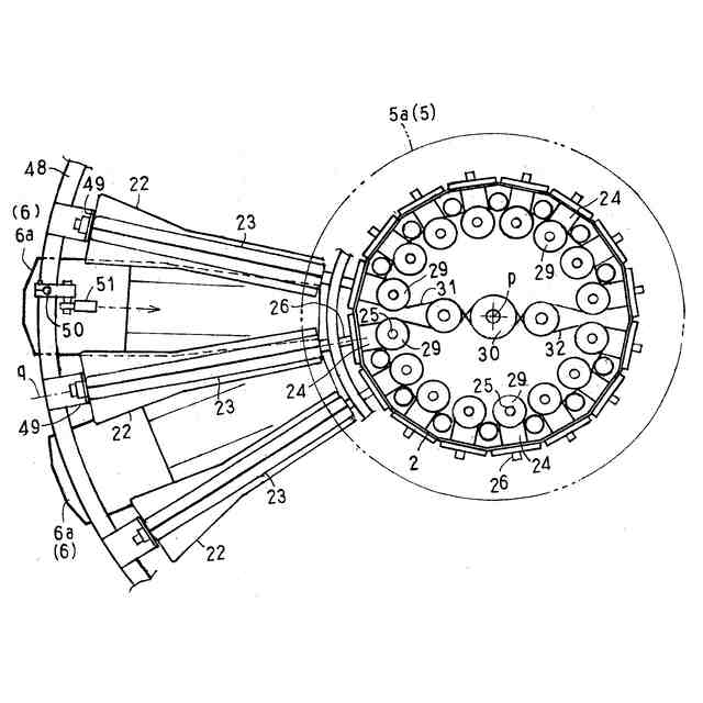 【解決手段】 隣接する直進フィーダ6の境界部位の上方に、境界部位の長手方向に沿う軸心q周りに回転駆動される細長い羽根軸状のほぐし部材23を配備してある。