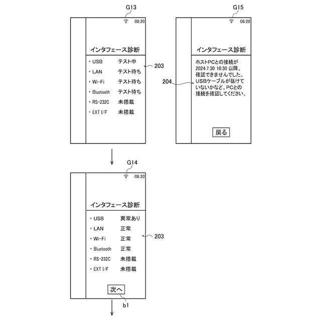 【解決手段】本発明のある一態様に係るプリンタは、プリンタに搭載されている装置に対して過去に発生した事象を発生時刻の情報と関連付けたデータベースを記憶する記憶部と、ユーザ操作に応じて上記装置に対する自己診断処理を実行するプロセッサと、自己診断処理の実行結果を表示する表示部と、を備える。自己診断処理は、データベースから、上記装置に対して発生した過去の1回以上の事象と各事象の発生時刻の情報とを含む事象履歴情報を取得すること、及び、事象履歴情報と、上記装置の現在の稼動状態を示す稼動情報と、に基づいて、上記装置の経時的な故障有無に関する故障情報を取得すること、を含む。