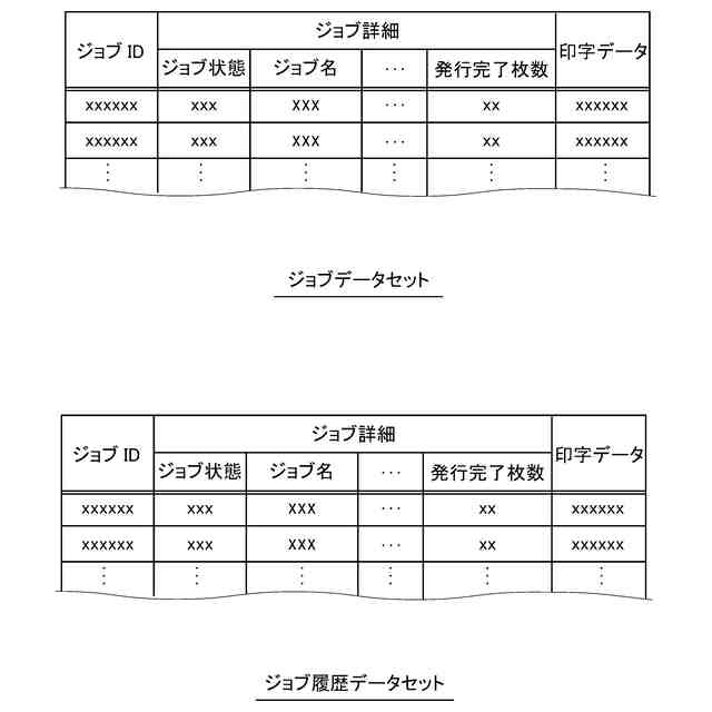 ジョブデータセットおよびジョブ履歴データセットのデータ構成例を示す図である。