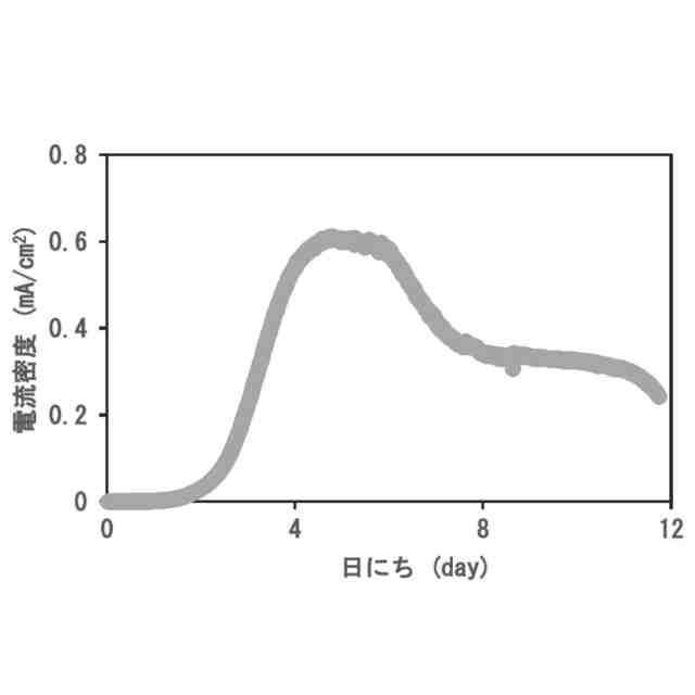 電気化学セルにおけるADMFC1株による電流生成の結果を示すグラフである。