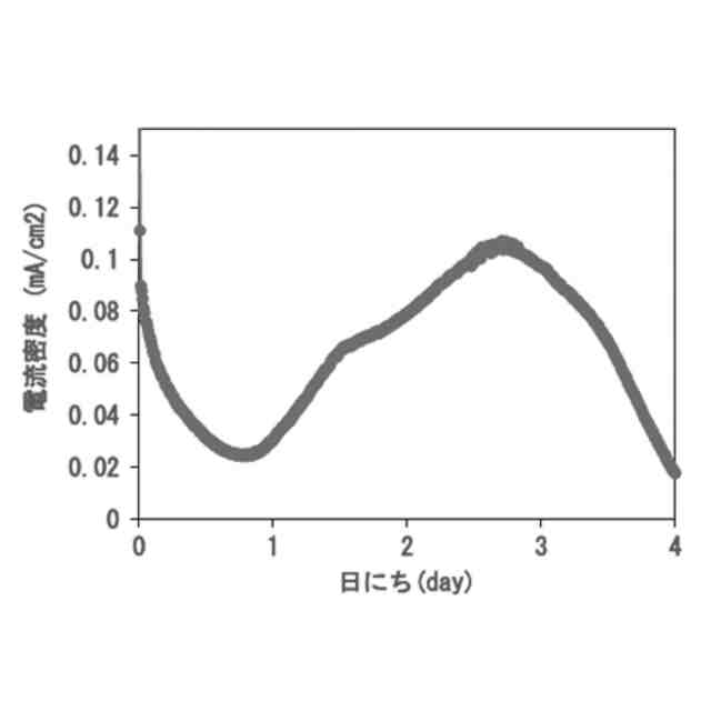 電気化学セルにおけるADMFC2株による電流生成の結果を示すグラフである。