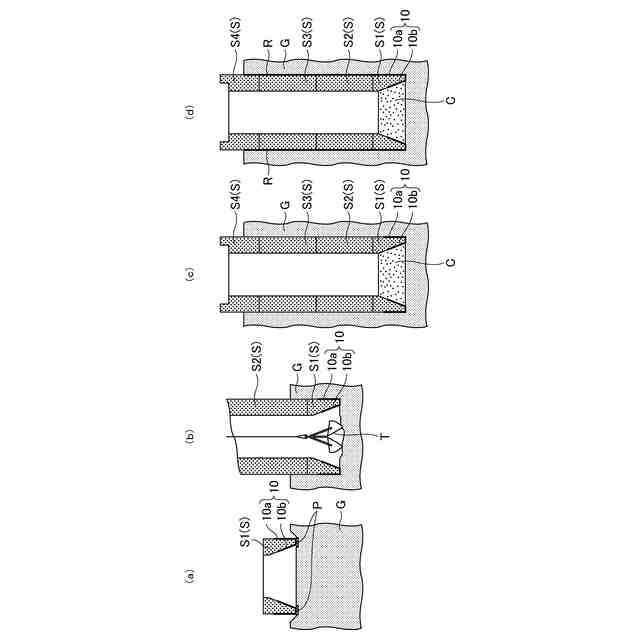 さて、地盤を垂直に掘削して地中に沈設されるケーソン躯体の最深部に形成された刃口部は、沈下時に荷重が集中するため、鋼板で製作された刃口金物(ケーソン刃口金物)により保護されている。この刃口金物は環状の外周枠部と内周枠部とで構成されている。内周枠部は下端に向かって外側に広がるテーパ状になっており、内周枠部の地盤との接触面は、表面を平滑にして沈下時の抵抗とならないように製作されている。