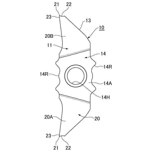 尚、特許文献1に記載の切削インサートは、本発明に係る切削インサートの外郭形状を開示している。そして、特許文献1に記載のホルダは、本発明の切削インサートでも共通化できる。