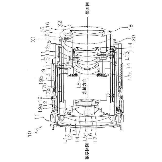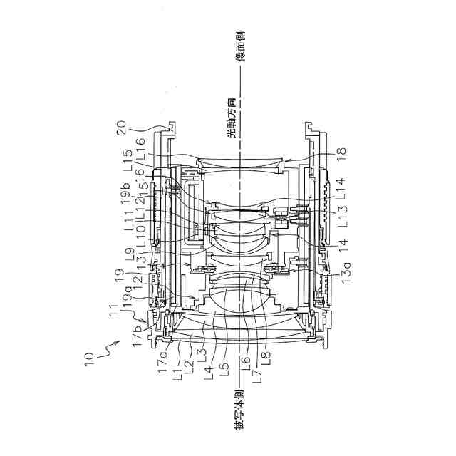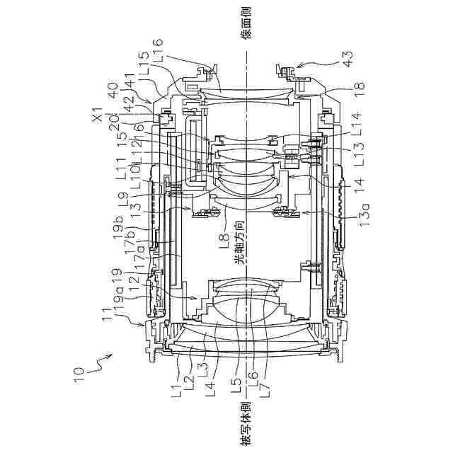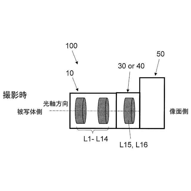 本実施形態に係るレンズ鏡筒10は、カメラ本体50(図4A等参照)に対して着脱可能な状態で、カメラ本体50側のマウント部に装着される。また、レンズ鏡筒10は、図1に示すように、後述するアダプタ30,40が像面側に着脱可能であって、アダプタ30,40が装着された状態で、カメラ本体50のマウント部に装着され、カメラ100(図4A等参照)を構成する。そして、レンズ鏡筒10は、カメラ本体50側に設けられた撮像素子(図示せず)へ、被写体像を導く光学系(レンズL1~L16)を有している。