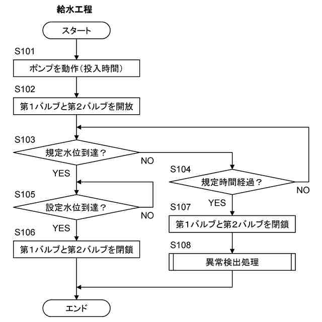 前記制御部は、前記給水装置により前記外槽内へ給水が開始されてから規定時間が経過するまでに前記外槽内の水位が規定水位に到達しない場合に、前記異常検出処理を実行する、