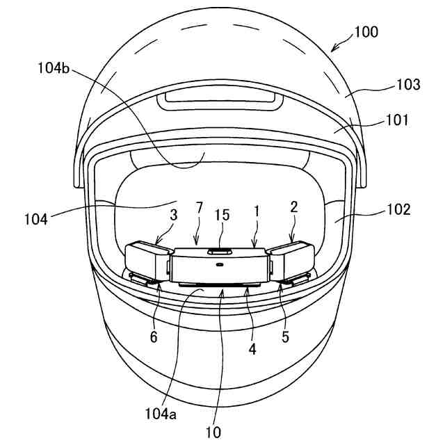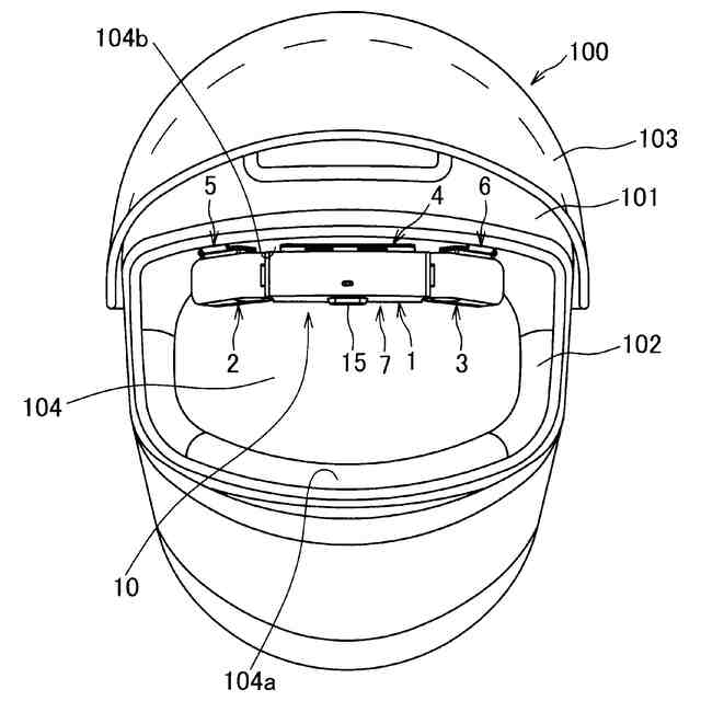 本発明の実施例4にかかる通信装置のヘルメットへの取り付け例の一例を示す図である。