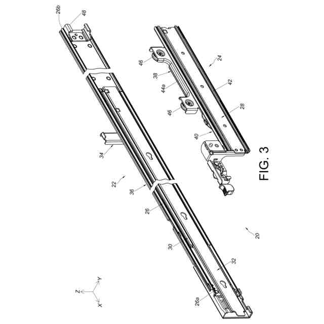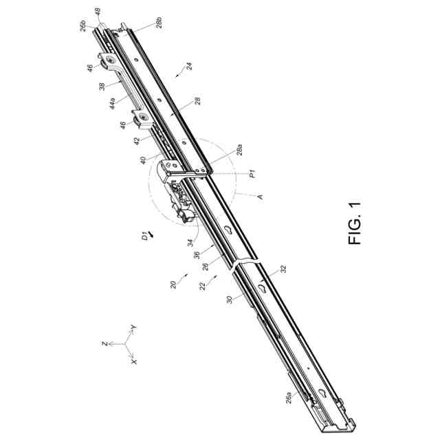 本発明の実施形態に係り、第1視野角でスライドレール機構を示す図である。