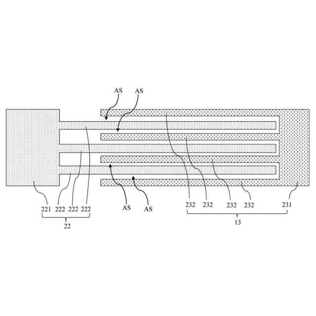 一実施形態において、第1延伸部は、前記2つの第2延伸部の間に設置され、第1延伸部といずれか1つの第2延伸部との間に距離を有する。