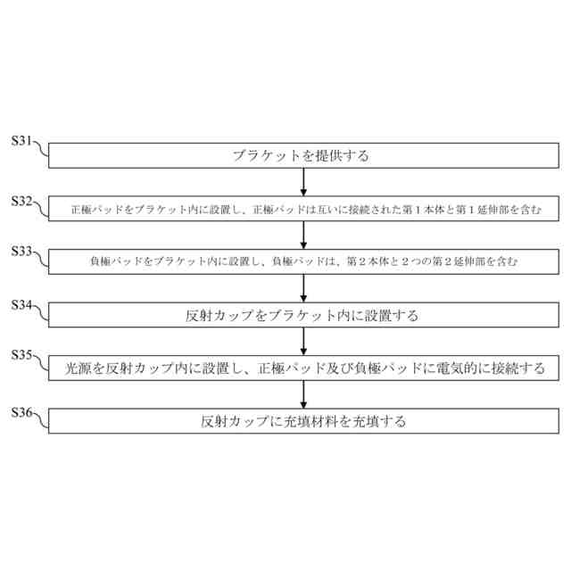 前記ブラケット内に設置され、前記正極パッドと前記負極パッドに電気的に接続される光源と、