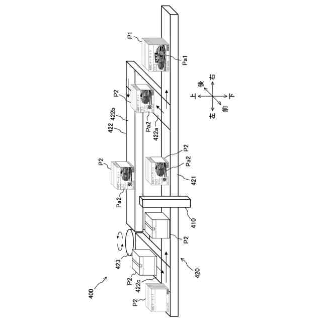 【解決手段】商品を収容する包材P(P1,P2)を搬送する搬送機構420は、印刷部410において包材Pを搬送する印刷搬送部421と、この印刷搬送部の印刷部410よりも搬送方向下流側から分岐し、印刷搬送部421の印刷部410よりも搬送方向上流側に合流する循環搬送部422と、この循環搬送部において包材P(第2包材P2)を回転させる回転部423とを有する。制御部は、包材Pに印刷される印刷画像(広告画像Pa)及びこの印刷画像の印刷面情報を取得する印刷面情報取得部と、印刷画像に基づいて印刷部410を制御する印刷制御部と、印刷面情報に基づいて包材P(P2)を循環搬送部422に搬送させるように搬送機構420を制御する搬送制御部とを有する。