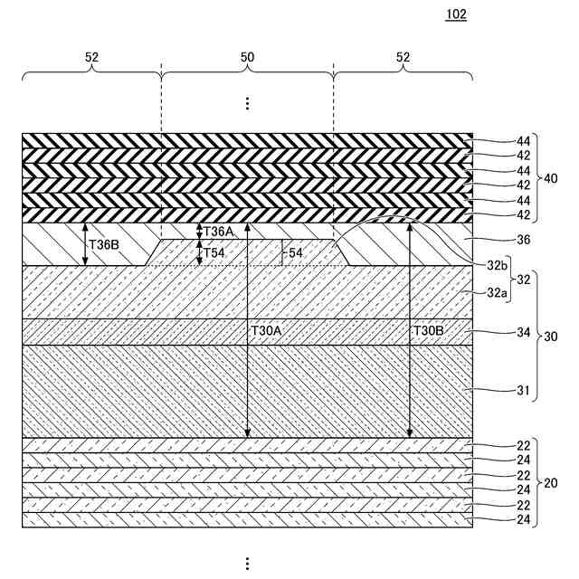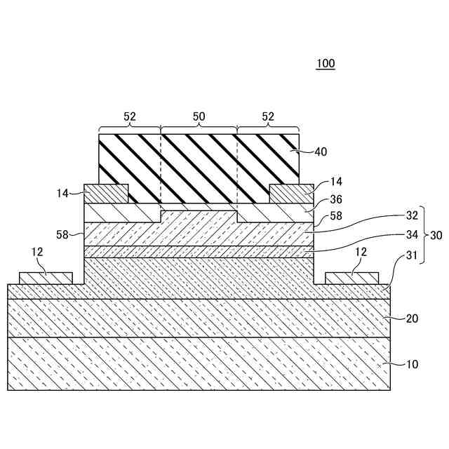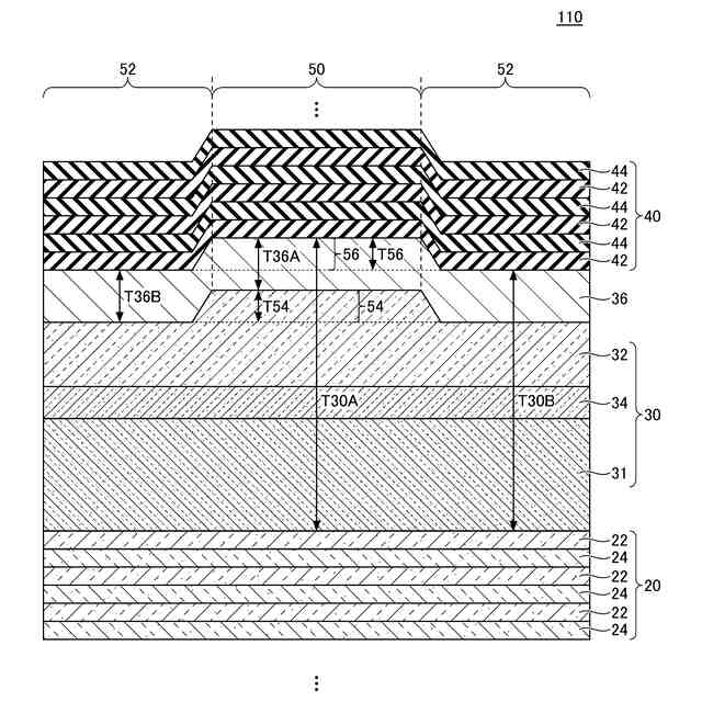 特許文献1には、凸部の上面に設けられた透明電極の厚さと、外周部の透明電極の厚さとの関係について記載されておらず、図面からは、中央部と外周部との透明電極の厚さは同じに図示されている。この場合、高次の横モードが生じる可能性がある。