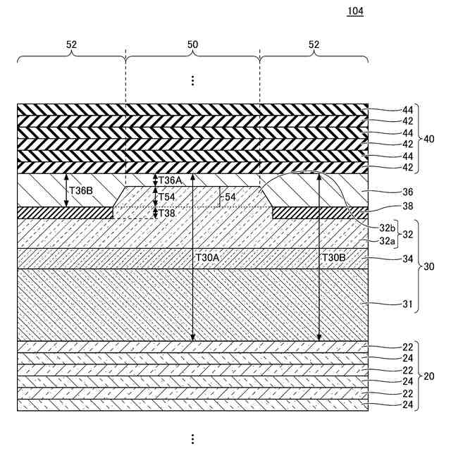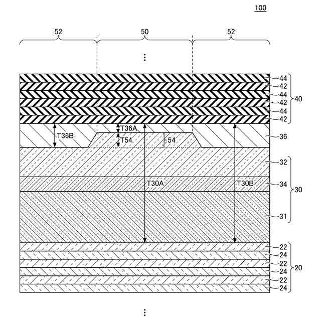本発明の実施形態によれば、第1反射鏡と、第1導電型半導体層と、活性層と、第2導電型半導体層と、透明電極と、第2反射鏡と、を順に備え、前記第2導電型半導体層における前記透明電極側の面は、外周部に対し中央部が突出し、前記透明電極の前記中央部における厚さは、前記透明電極の前記外周部における厚さより小さい。