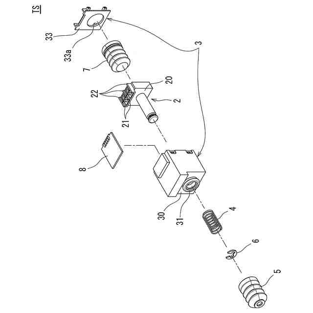 前記筐体内に収容され、前記軸部材の第2側に取り付けられた可動接点と、