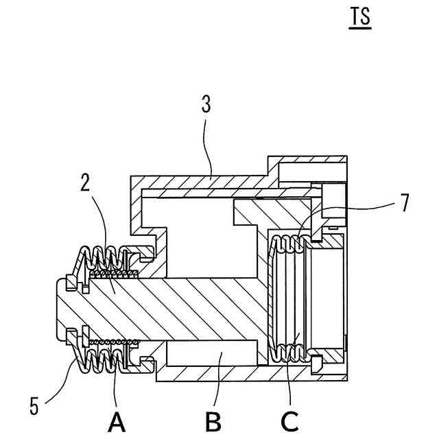 前記外部管状部材内の空間の体積と、前記筐体から前記内部管状部材が占める空間を除いた空間の体積との和は、前記軸部材の位置に拠らず略一定である