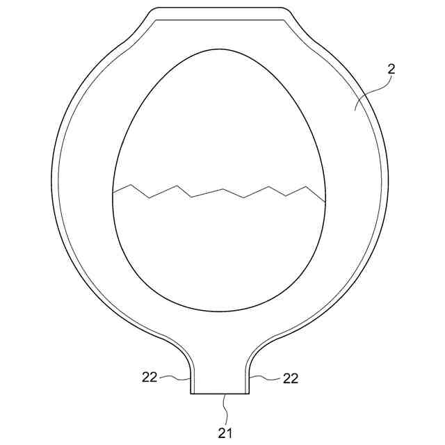 図2に示すように、袋2は、空気注入部3が外部に伸びる開口21の近傍が、接着幅が狭く、他の接着部分よりも接着強度の弱い弱接着部22となっている。ここで、袋が先端側から破れて開口側が破れないと、破れた袋は空気注入部に留まってしまう。それに対し、弱接着部22を有する袋は、風船1が膨らんだ際に弱接着部22を起点としてシート21a、bが剥離して袋2が破れるため、破れた袋2が空気注入部3に引っかかって留まることを防止することができる。また、袋2が手元側である開口21近傍から破れることにより、破れた袋2が先方側へ勢いよく弾けるように取り除かれるため、袋2から風船1が表出する際のエンターテイメント性が高くなる。一実施態様では、弱接着部は、他の部分よりも接着幅を狭くすることにより形成されているが、本発明において、弱接着部は、他の部分より接着強度が弱ければよく、その手段は特に限定されない。例えば、接着領域を破線状に形成して接着面積を少なくする等の方法により弱接着部を形成することができる。また、接着剤により接着する場合は、開口部近傍に弱い接着剤を用いる、ヒートシールにより接着する場合は、開口部近傍のヒートシール温度を低くする等により弱接着部を形成することもできる。