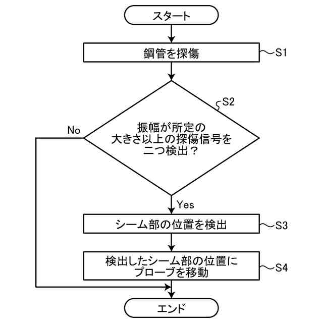 貫通式の渦流探傷装置ではなく、プローブ型の渦流探傷装置を用いる場合、探傷範囲に対する傷体積の割合が増えるため、シーム部の周辺のみを高感度に検査することが可能である。一方で、プローブ型の渦流探傷装置では、シーム部の位置(以下、「シーム位置」ともいう)の変動をカバーするために複数のプローブを設置することが好ましい。