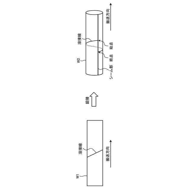鍛接鋼管は、所定の温度まで加熱した熱延鋼板(スリットコイル)を管状に形成し、鍛接機によって接合部(以下「シーム部」という)を接合した後、ストレッチレデューサによって所定の径まで縮径し、その後所定の長さに切断、冷却されることにより製造される。鍛接鋼管の材料である熱延鋼板は、その先端を先行する鋼板の尾端と溶接して繋ぎ合わせて連続的に製造されるため、生産性が高く、かつ不連続部の少ない高品質な製品を製造可能な連続製造ラインとなる。
