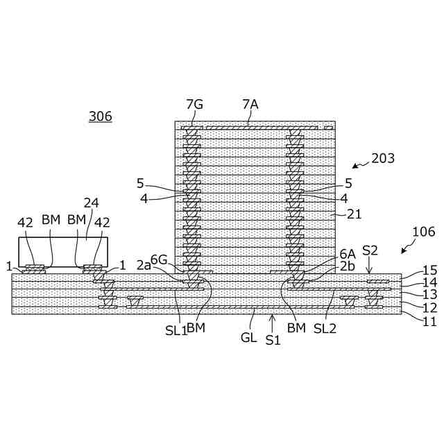 前記多層基板部は、当該多層基板部の上面に層間接続導体を有し、