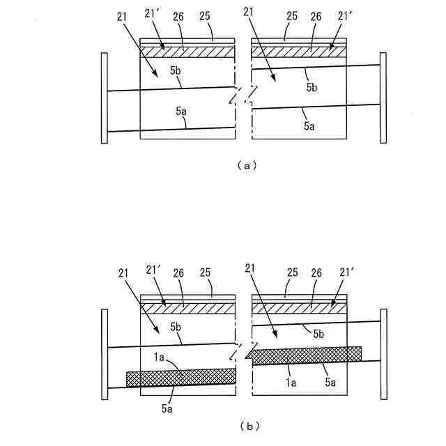 本実施形態による橋梁の桁端止水工法によりシール層を形成した遊間を示す図であり、同図(a)は橋軸直角方向から見た側面図、同図(b)は橋軸方向から見た断面図である。