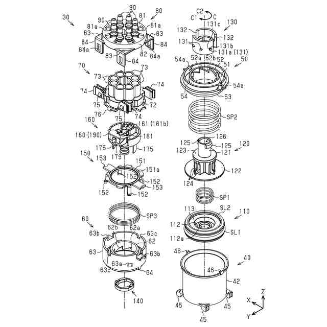 図30は、図18のロータリバルブにおいて、ロアピストン及びセンターピストンが下降したときのC-C線断面図である。