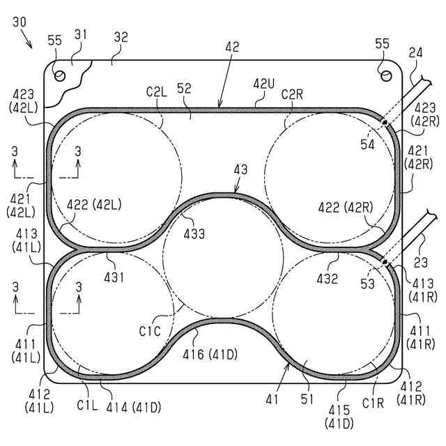 空気袋30は、シートバック12におけるユーザの腰部に接する部分に内蔵されている。この点を踏まえ、以降の説明では、空気袋30の方向をシートバック12に内蔵されるときの方向に従って説明する。つまり、空気袋30をシートバック12の幅方向及び上下方向を用いて説明する。ここで、シートクッション11とシートバック12との間をなす角度は垂直とは限らないため、シートバック12の上下方向は車両の上下方向に該当するとは限らない。また、シート10の設置方向は車両の前方とは限らないため、シートバック12の幅方向は車両の幅方向に該当するとは限らない。