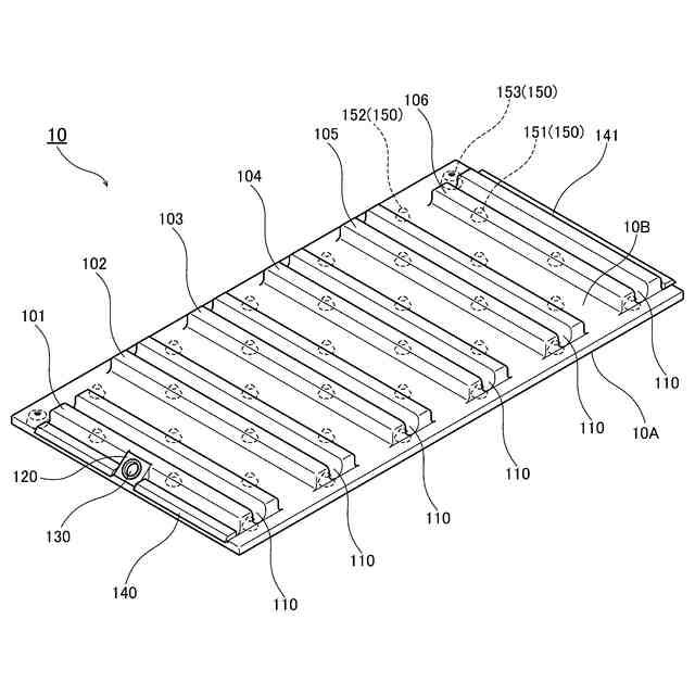 図1に示すように、空調システム1は、内部に潜熱蓄熱材等の液体を収容する複数の放射パネル10を有する放射式(輻射式)空調である。空調システム1は、放射パネル10の他、断熱材30と、熱媒が流通する配管40と、熱媒を循環させる循環装置50とを備える。放射パネル10は、建築物Mの居室2の天井に配置され、断熱材30は、放射パネル10の上面10B(第2面)を覆うように配置されている。