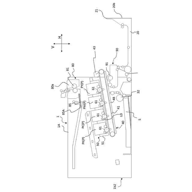 実施例1の定着装置が移動した状態のプリンタを示す図