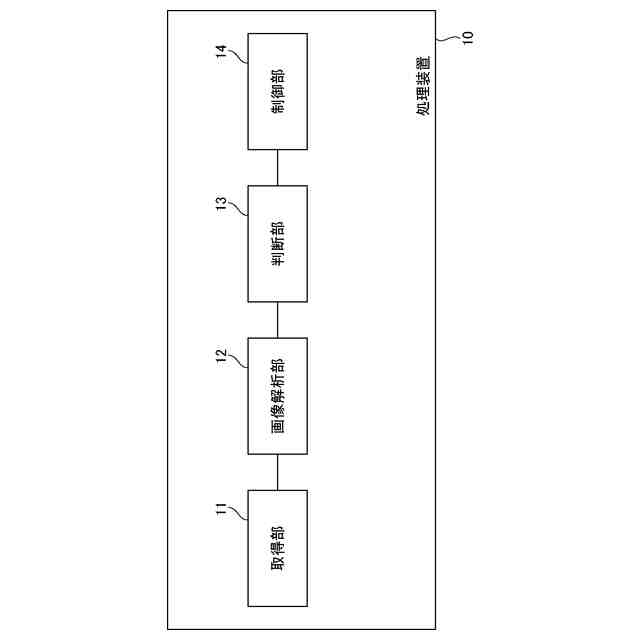 【解決手段】この開示の処理装置は、取得部と、画像解析部と、判断部と、制御部とを有する。取得部は、人物を撮影した画像を取得する。画像解析部は、画像に基づき、人物の生体認証及び脈拍測定を行う。判断部は、生体認証で特定された人物の識別情報に紐付けて登録されている参照脈拍と、脈拍測定で測定された脈拍とに基づき、人物の状態が警告条件を満たすか判断する。制御部は、人物の状態が警告条件を満たす場合、警告処理を行う。