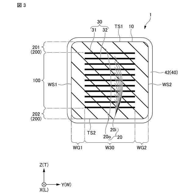 図1に示す積層セラミックコンデンサのIII-III線断面図(WT断面)である。